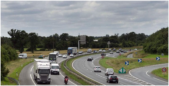 法國(guó)高速公路大多數(shù)為瀝青路面、瀝青采用改性瀝青(塑料或橡膠),典型的路面結(jié)構(gòu)類型有:柔性結(jié)構(gòu)、半剛性結(jié)構(gòu)、混合型結(jié)構(gòu)和剛性結(jié)構(gòu)。面層一般采用5厘米至6厘米的瀝青混凝土,骨料采用連續(xù)級(jí)配,有些路段使用排水瀝青面層,以減少雨水對(duì)路面摩擦系數(shù)的影響,排水瀝青面層骨料采用間斷級(jí)配,面層與基層加一層封水連接層,防止雨水滲入基層。